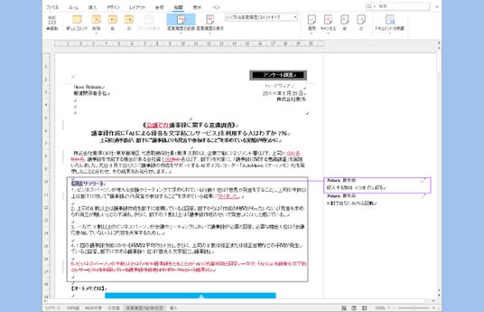 文書を校閲する際に必要な変更履歴やコメント注釈の挿入ができます。