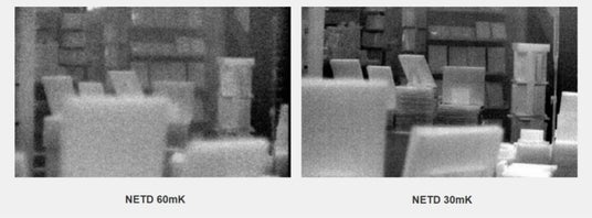 AIを搭載した本製品は、ピクセルピッチが17μm(マイクロメートル)で、384×288 QVGA(Quarter Video Graphics Array)解像度とNETD30mK(ミリカルビン)の優れた熱感度(NETD, Noise Equivalent Temperature Difference)を誇ります。この著しく低いNETD値により、鮮明で正確なイメージを確認することが可能です。
