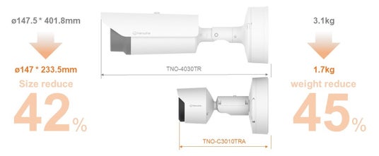当社従来製品(TNO-4030TR)比で、本製品のサイズは42%小型化し、重量も45%軽量化いたしました。設置場所の選択肢が大幅に広がり、スペースが限られた環境下での活用を実現します。