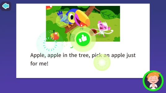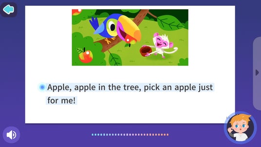 トド英語の新機能「Read Aloud(おんどく)」(以下、「Read Aloud」)は、子どもがデジタル英語絵本を読むと、AIがその音声を聞き取り、発音精度を判定するシステムです。1ページ読み終えるごとに、AIが評価し、練習が必要な単語や文章を色分けして表示します。1ページごとにキャラクターが笑顔で褒めるので、キャラクターと一緒に音読を楽しむ感覚を味わうことができます。