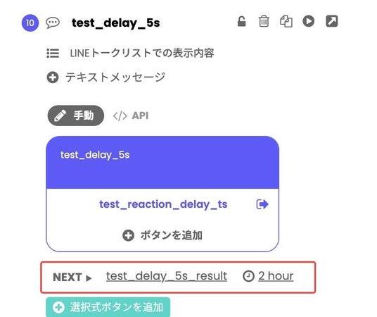 「n日後」に配信すると設定した場合、友だちの操作タイミングを基準にして配信日時が決まります。例えば午前10時に操作した場合、n日後の午前10時に配信されます。