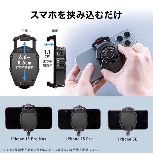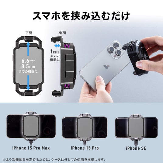 サンワサプライ株式会社(本社:岡山市北区田町1-10-1、 代表取締役社長 山田 和範)が運営している直販サイト『サンワダイレクト』では、伸縮式クランプ固定で挟み込むだけで様々なスマホに対応し、ペルチェ素子で熱を持ったスマホを急速冷却するスマホクーラー。7Wの冷却性能のスタンダードモデル「400-CLN034」と、19Wの冷却性能のハイエンドモデル「400-CLN035」の2機種を6月5日に発売しました。