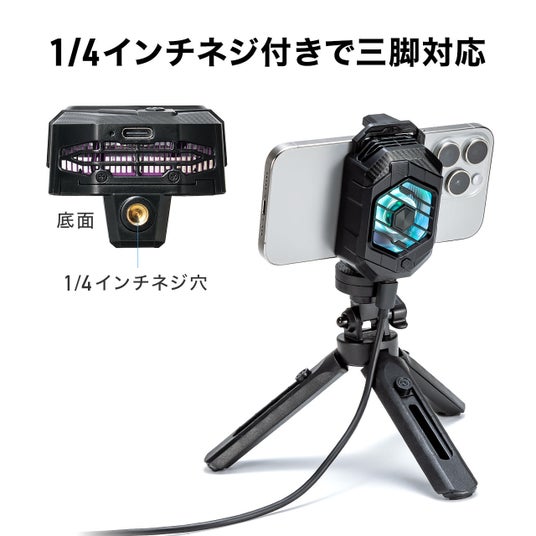 最強スマホクーラー ハイエンドモデル 19W出力 ペルチェ素子 クリップ固定 冷却 コンパクト 軽量 冷却ファン USB Type-C PD給電 三脚対応 iPhone Android
