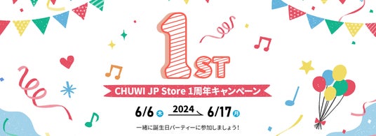 おかげさまでCHUWI JP Storeは1周年を迎えることとなりました。ひとえに皆様のご愛顧の賜物と心から感謝いたます。感謝の気持ちを込めて、2024年6月6日(木)~6月17日(月)の間、1点だけ最大15,000円オフあり、店内の商品2点以上購入で17%オフになる1周年キャンペーンを開催いたします!