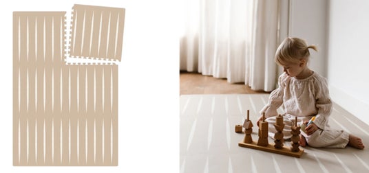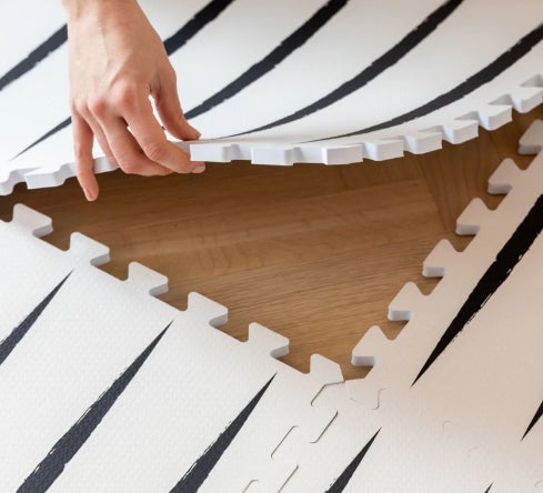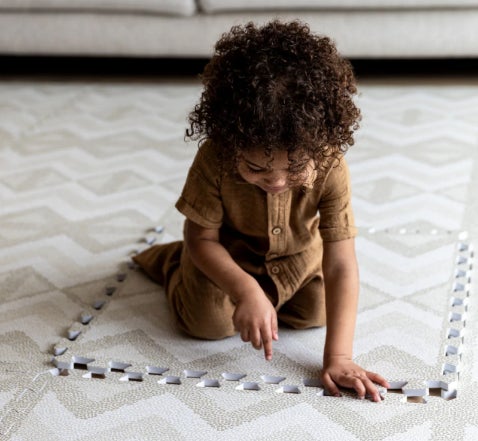 eeveveのフォームプレイマットは、お座りやハイハイができるようになった赤ちゃんのためのベビーマットとしてだけでなく、お子さまのすべての成長段階でお使いいただけます。高品質なEVA(エバ)フォーム製で、高密度、厚みのあるマットは、体を動かすことが好きなお子さまのお部屋、大人のヨガマットとしてもおすすめです。美しいデザインで、マット自体が一つのインテリアとしてお部屋の雰囲気を演出します。その他のeeveveアイテムとのコーディネイトの組み合わせは無限大です。一枚一枚がパズルのピースの様になっており、必要なサイズに合わせてジョイントしながら使うことができます。軽量で収納しやすくなっています。