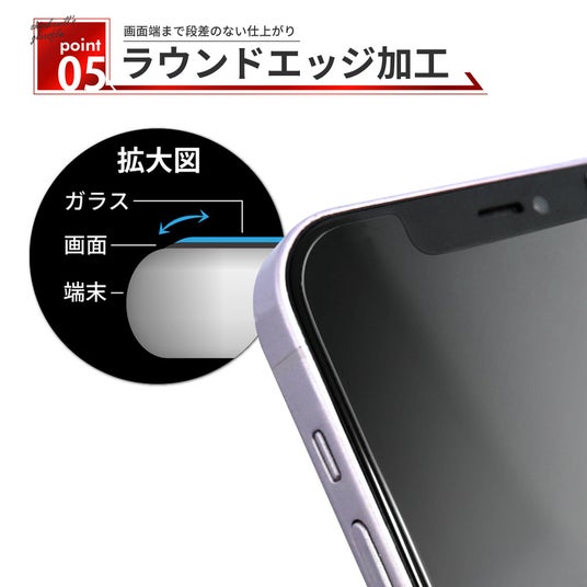 ガラスフィルムの縁は滑らかな曲面になっており指が引っかからず剝がれにくい構造です