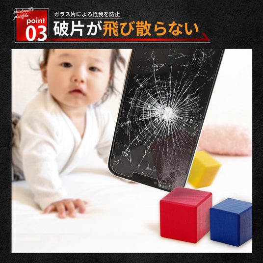 ガラスが割れても飛び散らないのでガラスフィルムでの怪我を防止します