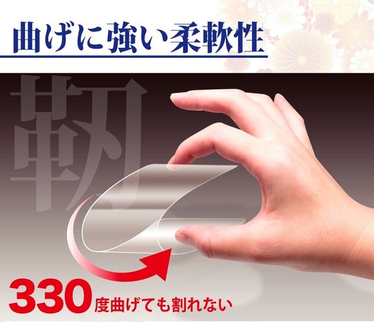 ガラスフィルム史上かつてない強靭性と圧倒的なしなやかさで330度曲げても割れない
