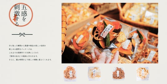 透明なパッケージは、これまでのお煎餅作りでも大事にしてきた”素材”の良さにこだわった高品質な商品への自信の表れ。