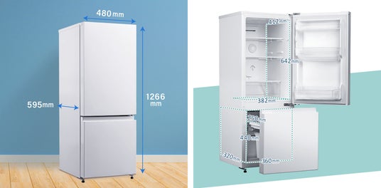 横幅は48cmとスリムなサイズですが、容量は冷蔵室と冷凍室を合わせて156Lの大容量で、お料理好きな一人暮らしの方や食材を買いだめしておきたい二人暮らしの方にもおススメできる冷凍冷蔵庫です。また、どのようなインテリアにもなじむシンプルなデザインになっており、置き場所を選びません。