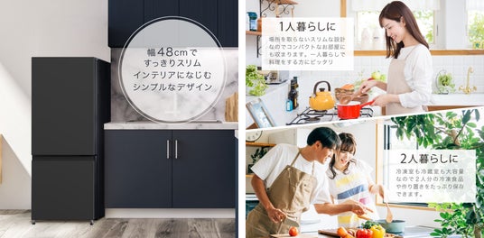 1~2人暮らしにぴったり!幅48cmのすっきりスリムな冷凍冷蔵庫156Lが、新色のブラックも加えてジェネリック家電ブランド「MAXZEN」より2024年6月7日から発売