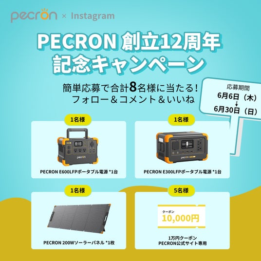 2012年に創立した開発・製造・営業が三位一体となり、ポータブル電源の専門会社PECRON TRADING (HK) CO., LIMITED【以下PECRON】は、創立12周年を迎えました。日頃の感謝の気持ちを込め、PECRON JAPANは2024年6月6日(木)より創立12周年記念キャンペーンを実施いたします。開催期間中、PECRON公式サイトにおいて、一部製品を最大44%オフの感謝価格にて提供します。