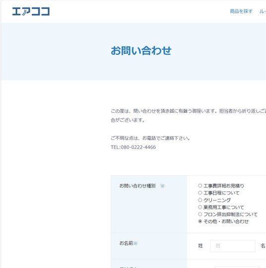 TOPページ下部にあるお問合せより、必要事項を入力して頂く事で、直接弊社エアコン専門の職員より商品のご提案を行わせて頂きます。