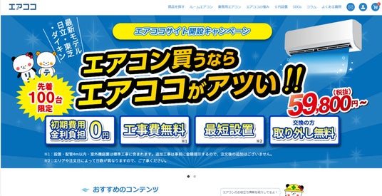 エアコン専門サイト「エアココ」のサービスを開始いたします。