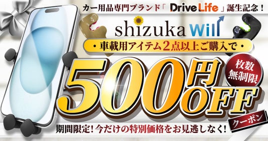 スマートフォンアクセサリー専門店の山口コーポレーション株式会社(本社:山口県美祢市、代表取締役社長:山口 貴嗣)のブランド「シズカウィル」は、カー用品専門ブランド「DriveLife ドライブライフ」の誕生を記念して限定クーポンを配布。