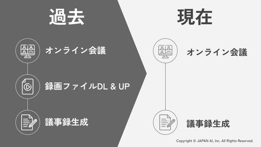 この技術により、「JAPAN AI SPEECH((TM)) 」をオンライン会議システムで利用することは、議事録作成の自動化・効率化において意義があると考えています。