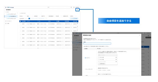 この新機能により、GVA 契約書管理は、契約書管理における管理項目を自由に追加できるようになります。デフォルト項目である管理番号や取引先名、締結日などに加え、各企業が追加したい項目を追加し、各企業の方針にあわせて管理することが可能です。また、入力方式もプルダウンやチェックボックス、テキストなどの多様な形式から選択ができるため、各企業のニーズに応じた柔軟な設定が実現します。