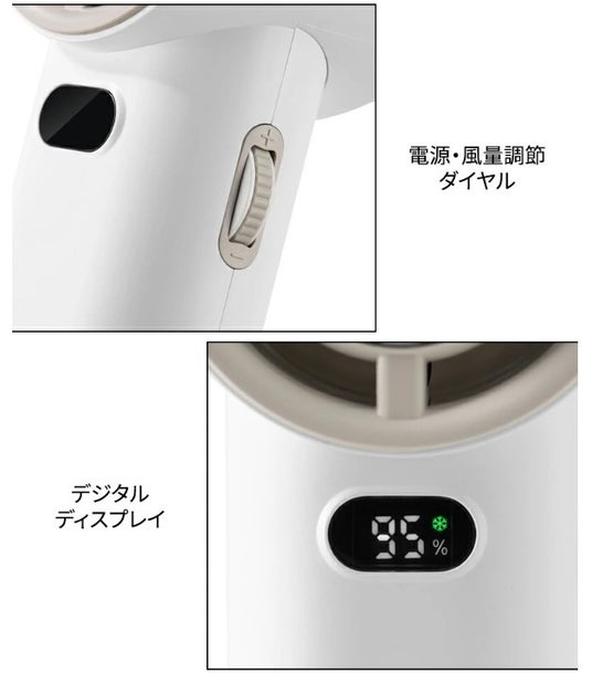 手に持ちやすい持ち手でコンパクト。風量切替、ONOFF