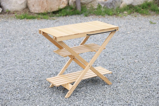 また、優しいぬくもりのある木製テーブルは、キャンプ時のキッチンテーブルやキャンプギアを並べた収納ラックとしてアウトドアシーンでの使用に加え、室内のインテリア、収納棚などとしても利用可能です。