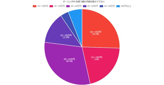 また、ゲーミングPCを買う際は価格よりも性能をやや重視する傾向にあり、予算は20~24万円の範囲であることも判明しました。