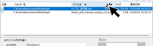 < 並び替えができる >ファイル名や更新日時などのメニュー名クリックで、並び替えができるようになりました。