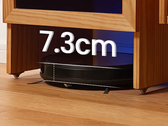 高さ7.3cmの薄型設計で、ベッドやソファの下にも簡単に入り込み、隅々まで掃除します。