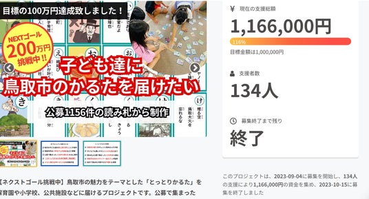 ・2023年10月:クラウドファンディング 終了(支援額1,166,000円)