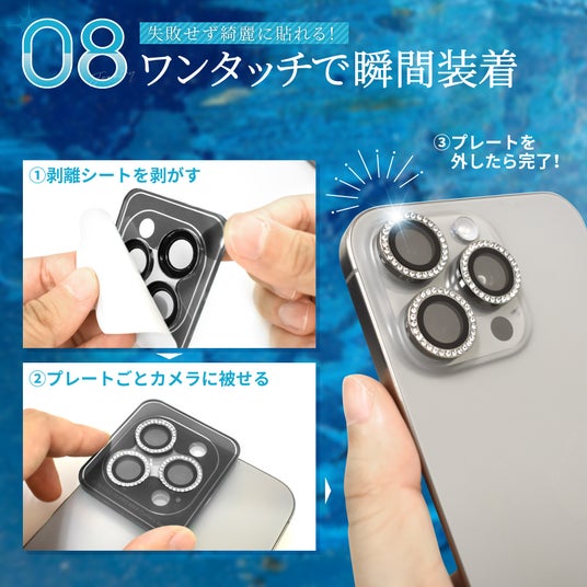 台紙ごとカメラに合せて装着するだけ!誰でもカンタン・キレイに貼り付け。