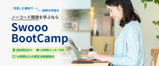 「Swooo Boot Camp」は、システム開発サービス「Swooo」が提供する、実務レベルのノーコード開発が学べるオンラインスクールです。