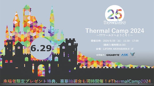 弊社取り扱いメーカーであるThermaltake社は、2024年6月29日(土)、東京・LIFORK AKIHABARA IIにおいて、未発売の最新製品を体験できるスペシャルイベント「Thermal Camp 2024」を開催いたします。