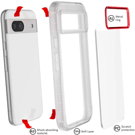 衝撃吸収テクノロジー採用独自の耐衝撃テストで約2.4mからの落下にも耐える性能を持ち、信頼性の高い保護を提供します。またワイヤレス充電やNFCにも対応しており、Google Pixel 8aの機能を損なうことなく、便利に使用することができます。