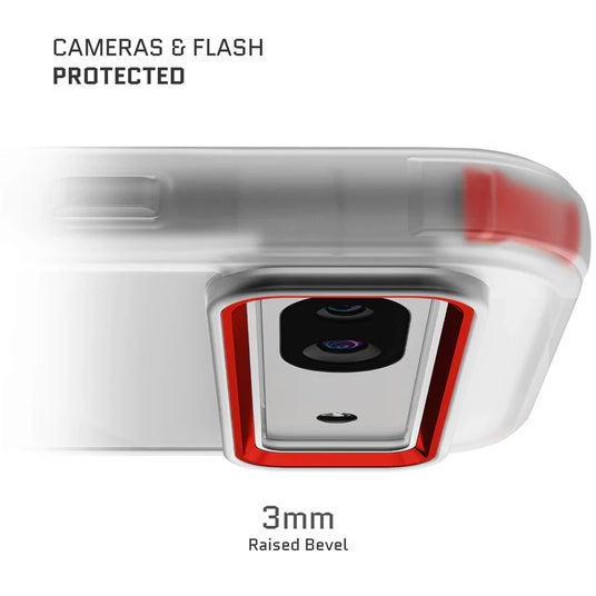 3mm厚のベゼルカメラ部分は3mm厚のベゼルで不意の落下時にもカメラレンズをしっかりと保護します。またTPUの枠は画面よりも少し高めに設計されており、スクリーンが直接接地しないようにデザインされています。