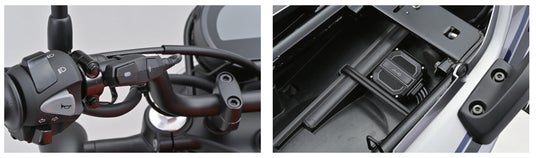 小型で防塵・防水性能が高い(IP65)本体ユニットと、GPSアンテナ内蔵のスリムなリモコンスイッチ(IP67)により、スッキリとした取り付けが可能です。