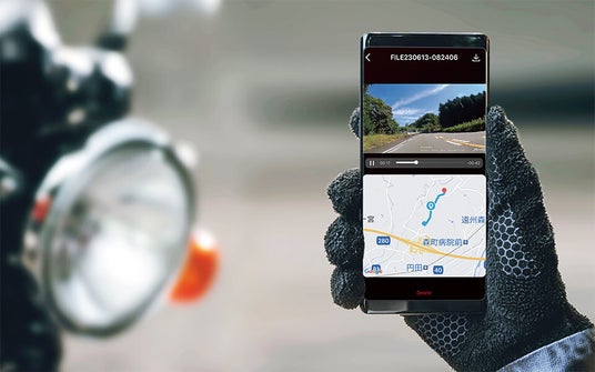 『Mio MiVue』シリーズは、オートバイの過酷な環境に耐える高い防水性・防塵性・耐振動性を備えた、スマートフォンで快適に操作できる超小型ドライブレコーダー。