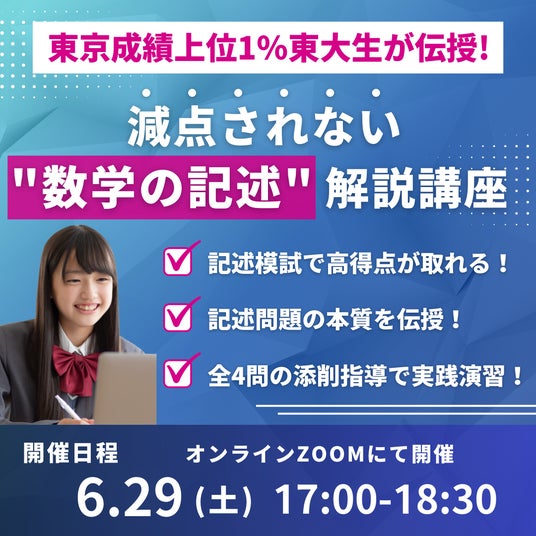 【6/29】東大生が教える「減点されない“数学の記述”解説講座」|オンラインセミナー - 東大先生