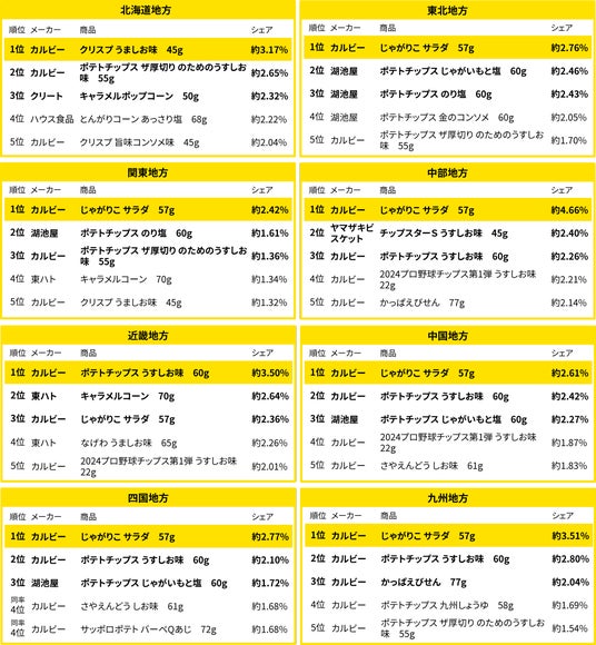 全国1位は「じゃがりこ」、九州地方は地域限定味のポテトチップスがランクイン!