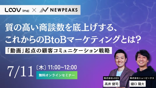 買い手は、「短時間で効率的に情報収集する」ことを、売り手は「限られたリソースの中で最大限の営業活動を行う」ことを求めています。本パートナーシップはニューピークス社のハイリッチな動画コンテンツとLOOVの対話型パーソナライズ動画を融合させることにより、買い手・売り手双方にとって質の高い購買環境をご提供し、これまでに体験したことのない新しいセールス/マーケティング施策を可能にします。ニューピークス社と共に、皆様の事業成長を加速させるソリューション提供を目指してまいります。