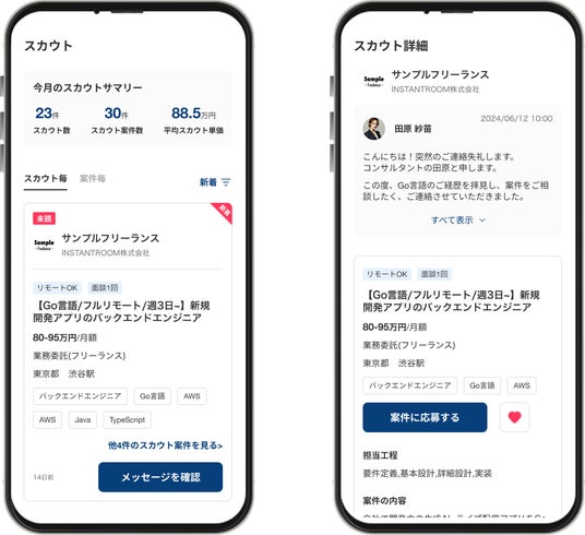 INSTANTROOM株式会社(本社:東京都渋谷区、代表取締役:曽根弘介)が運営する、フリーランスエンジニア・ITフリーランスの案件検索サイト「フリーランスボード(https://freelance-board.com)」は「スカウト機能」β版をリリースいたしました。