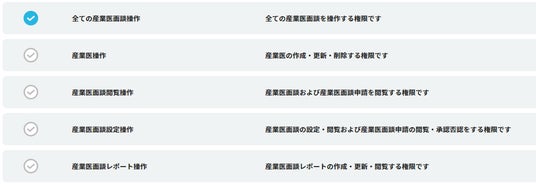「産業医面談調整」機能には5種類の権限があり、メンバー管理画面にて設定を変更することができます。
