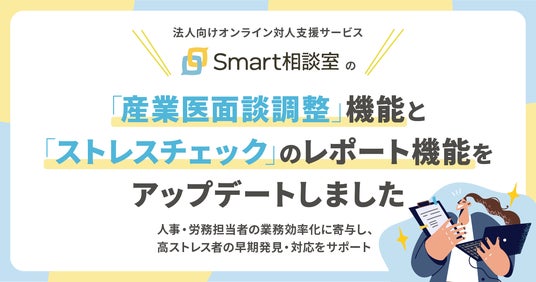 株式会社Smart相談室(本社:東京都港区、代表取締役・CEO:藤田 康男)は、法人向けオンライン対人支援サービス「Smart相談室(スマートそうだんしつ)」の「産業医面談調整」機能における管理者権限の種類増加と、「ストレスチェック」のレポート機能のアップデートを行いました。