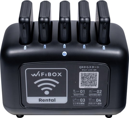 「WiFiBOX」は、当社が2022年4月1日にリリースしたWi-Fiレンタルのサービスで、即時予約(事前予約も可能)、受取、返却が非接触で行えるシェアリング型サービスです(特許出願中)。ルーターには充電用ケーブルが搭載されており、スマートフォンの充電も可能です。料金は日本国内プラン(無制限)の場合、1日840円(税込価格)で手ごろな価格帯も魅力のひとつ。運営コストの削減、設置場所の余剰スペース確保など多方面での複合的効果をもたらすサービスデザインが高く評価され、2022年にはグッドデザイン賞を受賞いたしました。
