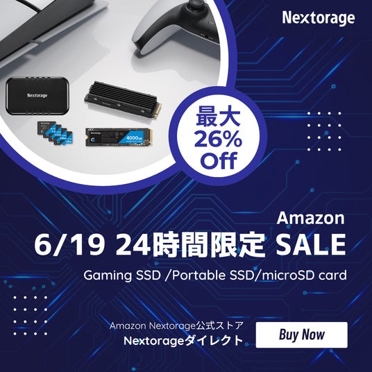 Nextorage株式会社(ネクストレージ株式会社、代表取締役:本多 克行、神奈川県川崎市)はAmazon Nextorage公式ストア「Nextorageダイレクト」にて、6月19日に24時間限定のゲーミング製品セールを行う事をお知らせいたします。