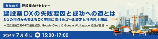 rakumo では、足立建設工業の大崎氏、Google Cloud のGoogle Workpace 担当が登壇する無料のセミナーを7月4日15時から開催します。