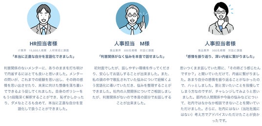 - 安心して相談できる環境:社外メンターだからこそ、安心して本音を相談でき、管理職自身が対話の効果を実感しながら、精神的な負担を軽減することを目指します。