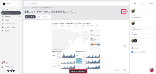 データ資産を一元管理しているにも関わず、見たいデータやダッシュボードが見つからないことは、ユーザーにとって大きなストレスになるため、各データ資産に「お気に入り」ができるようにし、必要な時に素早く確認できるようにいたしました。