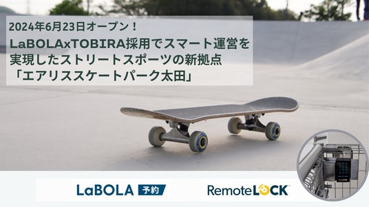 株式会社ラクシーズが開発・提供するスポーツ施設専用マネジメントシステム「LaBOLA(ラボーラ)」および株式会社構造計画研究所が提供するアクセスコントロールシステム「TOBIRA(トビラ)」を採用したスケートパークが2024年6月23日(日)に群馬県太田市でオープンします。LaBOLAおよびTOBIRAの活用により、空き状況の確認から予約、決済、鍵情報の受け渡しまでオンライン化し、スマートで便利な施設運営を実現します。