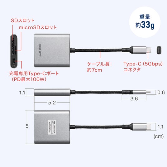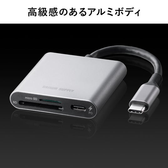Type-Cカードリーダー PD100W対応 microSD SD UHS-I アルミ コンパクト iPhone15 iPad