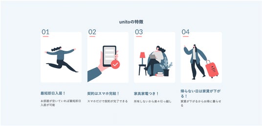 ・スマホ契約・最短即日入居可能なお部屋探しができる「unito(ユニット)」について