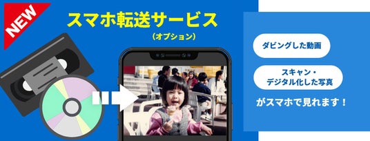 スマホ転送サービス(オプション)は、2024年6月17日(月)より受付を開始しております。日本ジャンボー株式会社のビデオDVDダビング申し込みサイト、または、郵送プリントの申し込みフォームにて、「スマホ転送サービス」をお申し込みいただけます。