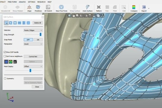 Quadサーフェス機能は、従来の標準的なサーフェシング手法では再現できない自由形状の表面を再構築することができます。また、独自の「スナップ・トゥ・メッシュ」機能を搭載しており、専門的な知識がないユーザーでも簡単に形状を作成することができます。